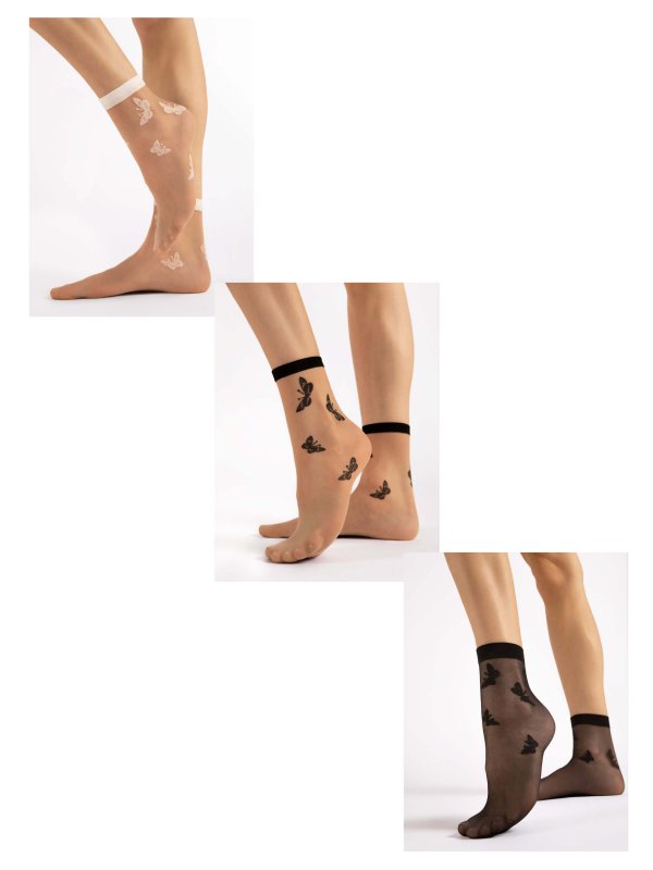 Summer von Fiore gibt es in 3 klassischen Farben mit Schmetterlingen am Knöchel und an der Ferse. Hier hast Du die Möglichkeit, mit kleinen Schmetterlingen in der Natur beizutragen. Diese bezaubernden, seidig glatten Söckchen sind ein Must have für Deine sommerliche Garderobe. Hier erhältst Du das klassische Schmetterlingsmuster kombiniert mit einem schicken und schlichten Bündchen in Schwarz oder Weiß. Das matte, transparente 15 den Material macht diese Strümpfe zu einem Styling-Hit. Sie sind in den Farben Weiß, Nude und Schwarz erhältlich. Summer ist im Zehenbereich verstärkt und verfügt über einen bequemes Rand. Die Socken bestehen aus Qualitätsgarn namhafter europäischer Garnhersteller.