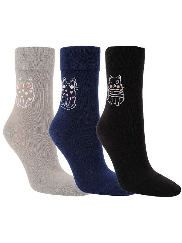 Harmony Baumwollsocken mit Katzenmotiven - 3er-Pack