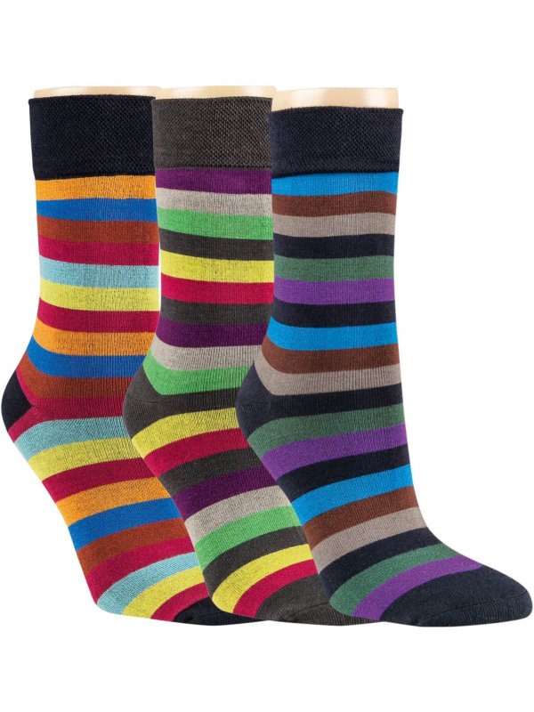 Schicke RS. Harmony Damenstrümpfe mit einem hohen Bambusanteil und modischen Streifen in frischen Farben. Bambus hat die Fähigkeit, bei warmem Wetter Wärme und Feuchtigkeit von Deinen Füßen abzuleiten und sie bei kaltem Wetter warm zu halten. Diese Bambusstrümpfe sind unglaublich weich und bequem. Die werden mit einem handgenähten Zehenbereich und unauffälligen Nähten gefertigt. Der Zehen- und Fersenbereich ist verstärkt. Diese Strümpfe sind perfekt für Dich, wenn Du leuchtende Farben liebst und gerne aktiv bist.
