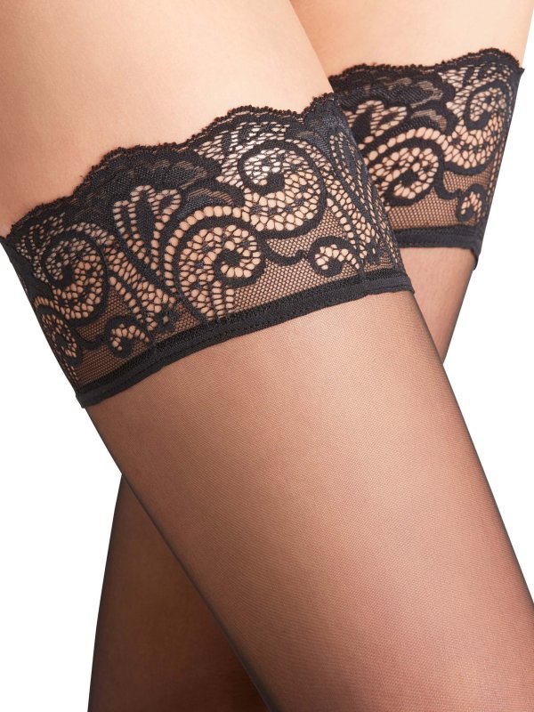 Falke Matt Deluxe 20 sind selbstsitzende Strümpfe mit einem schönen Spitzenbund. Sie haben, dank der innovativen 3D-Produktionsmethode, eine wunderschöne Struktur. Die Falke Matt Deluxe überzeugen mit einem tollen matten Aussehen und einem angenehmen Tragegefühl. Hier erhältst Du halterlose Strümpfe von hoher Qualität !