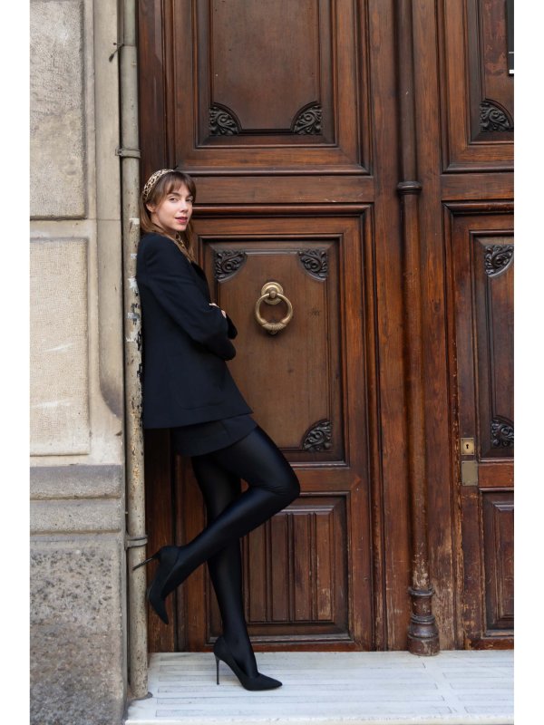 Diese Strumpfhose verbindet satten Wet Look Glanz ✨mit einem tief deckenden Opaque Finish - ein moderner, selbstbewusster Stil, der deine Beine klar und elegant erscheinen lässt. Die 150 den Qualität fühlt sich weich und geschmeidig an und legt ein gleichmäßig glänzendes Finish über deine Silhouette, das im Licht wunderschön zur Geltung kommt. Dank Lycra Beauty und Lycra Xtra Life passt sich das Material angenehm flexibel an und schenkt dir eine glatte, stabil sitzende Passform. Die Strumpfhose bleibt formstabil, ohne zu verrutschen, und fühlt sich dabei weich und komfortabel an. Der Baumwollzwickel sorgt für ein angenehmes Hautgefühl, auch wenn du sie viele Stunden trägst. Ein Modell, das durch seine klare Linie und seinen luxuriösen Glanz sofort Eindruck macht - von Alltag bis Abend.