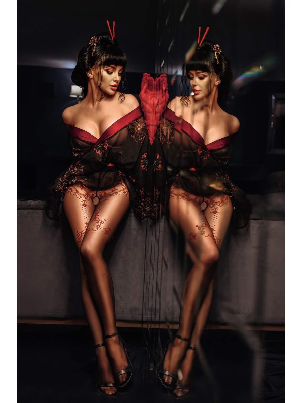 Ouvert Strumpfhose mit Burgundermuster - Black Secret (BS137) von Ballerina