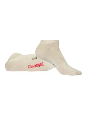 Reflexwear bedeutet Strumpfwaren für Kunden, die von ihren Socken Halt und Komfort erwarten. Mit diesem wunderbaren Sneaker bietet Dir Reflexwear eine revolutionäre Socke, die mit einem dünnen und ultraweichen Polyesterfaden gestrickt ist. Polyester hat gegenüber Baumwolle mehrere Vorteile. Polyester hat keine kühlende Wirkung und transportiert Feuchtigkeit von den Füßen weg, sodass sie trocken und angenehm bleiben. Der Reflexwear Sneaker Comfort und Diabetes - Modell hat eine perfekte Passform und eine sehr bequeme Flachnaht im Zehenbereich. Die Sneakersocken sind so konzipiert, dass sie während der Benutzung nicht in den Schuh rutschen und sind ohne Gummidruck gefertigt Das Sneaker-Modell ist tief geschnitten, was für optimalen Komfort um die Knöchel sorgt. Das Modell eignet sich als Sportsocke, wenn Du zum Beispiel Fahrrad fährst oder auf dem Golfplazt bist. Durch das spezielle Garn mit den eingebetteten Mineralien kann die Socke nach dem Waschen fusseln. Um dies zu minimieren, empfehlen wir, die Socken vorteilhafterweise auf links und am besten in einem Waschbeutel zu waschen.