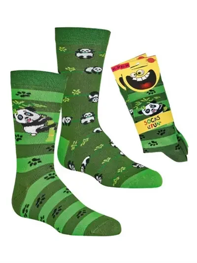 Coole Kinder Bambussocken mit einem Antei von 80 % Bambus. Diese Bambussocken sind mit süßen Pandas und Pandatatzen verziert. Bambus leitet Feuchtigkeit effektiv von den Füßen ab und macht die Socken atmungsaktiv. Immer trockene und warme Füße. Perfekt für alle aktiven Kinder. Der handgenähte Zehenbereich, die unauffälligen Nähte, sowie der verstärkte Zehen- und Fersenbereich sorgen für Komfort. Die Lieferung erfolgt als 2er-Pack in der Farbe Grün. Diese Socken sind unglaublich bequem und weich zu tragen und werden sicher zum Lieblingsstück im Kleiderschrank.