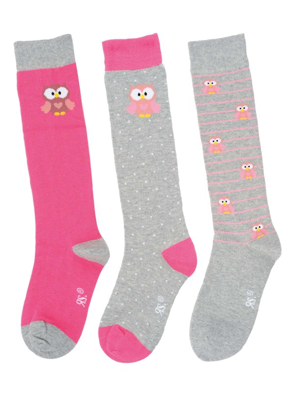 Kinder Kniestrümpfe – Baumwolle – 3er-Pack – 3 Farben - mit Eulen