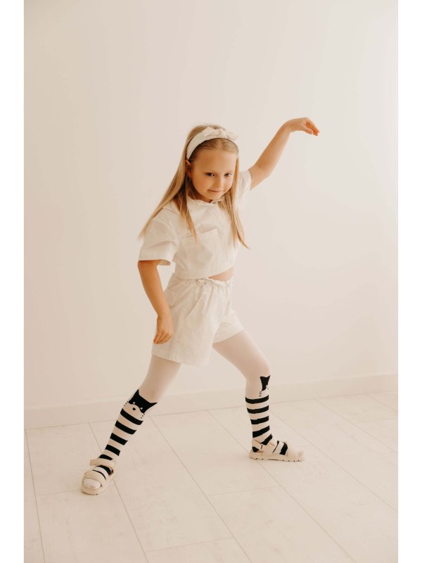 Cathy ist eine schöne Strumpfhose in 40 den für Kinder. Hier sind Komfort, Eleganz und das beliebte Design einer Katze vereint. Fiore steht für Superqualität. Cathy bezaubert in klassischem Weiß mit Katzenmotiven im unteren Teil der Strumpfhose. Der bequemer Bund sorgt für ein angenehmes Tragegefühl. Ein weiteres Produktmerkmal sind flache Nähte. Die Strumpfhose ist halbtransparent.