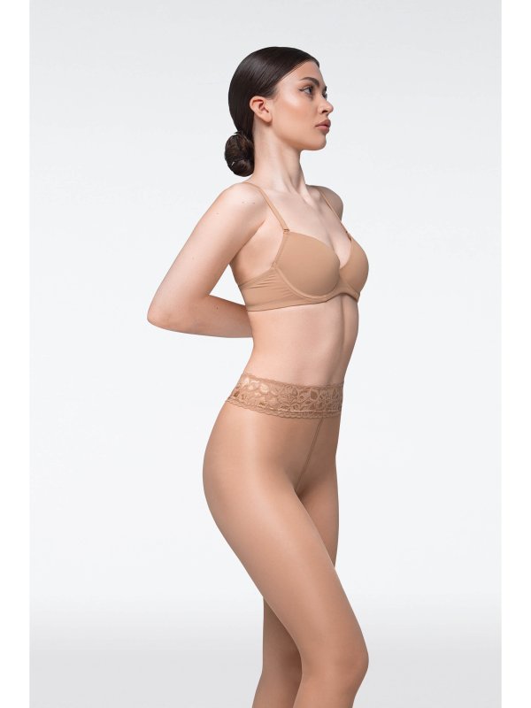 Wunderschöne und exklusive Strumpfhose mit einem eleganten 6 cm breiten Spitzenabschluss, der diesem Modell einen besonders femininen Touch verleiht. Der angenähte Bund besteht aus feiner Spitze im attraktiven Blumenmuster. Diese Strumpfhose ist eine der wenigen Strumpfhosen, die mit einem Silikonstreifen für zusätzlichen Halt und Komfort ausgestattet ist. Eleganz und Komfort werden hier wunderbar vereint.
