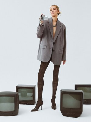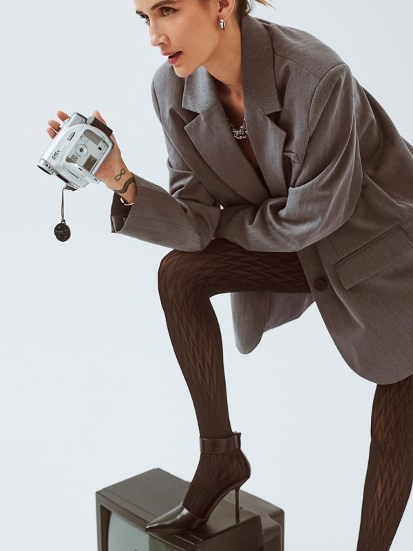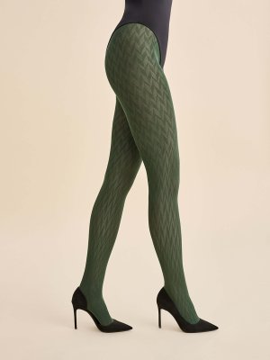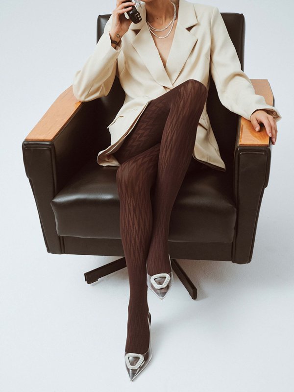 - Strumpfhosen mit einem geometrischen Fischgrätenmuster