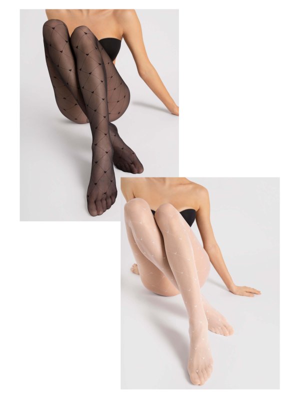 Feinstrumpfhose mit Herz- und Diamantmuster